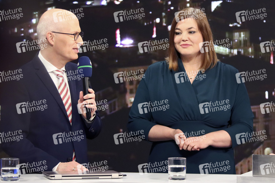 Bürgerschaftswahl 2020, Wahlabend, Politik, Wahl, Wahlergebnis, Politiker, SPD, Erster Bürgermeister von Hamburg, Politikerin, Bündnis 90/Die Grünen, Zweite Bürgermeisterin von Hamburg