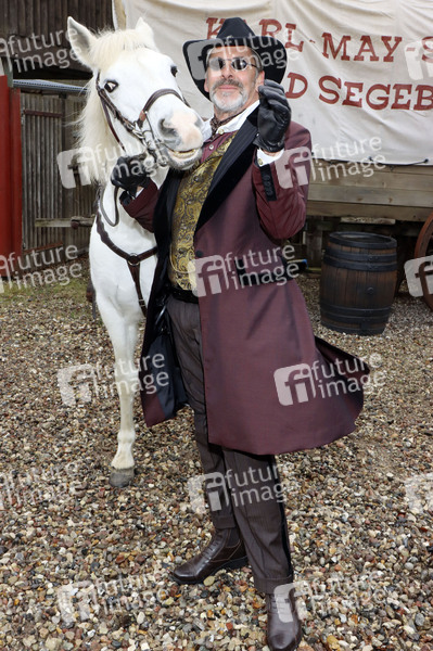 Prominenz, Fototermin, Pressetermin, Photocall, Fotocall, Unterhaltung, Entertainment, Kultur, Western, Freilichtbühne, Freilichttheater, Freilufttheater, Kalkbergstadion, Open Air Theater, 69. Karl-May-Spiele 2020, Der Ölprinz, Tier, Pferd, Schauspieler
