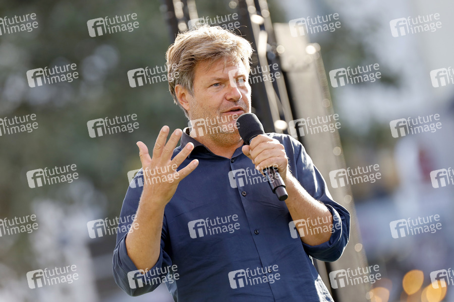 Politiker, MdB, Mitglied des Bundestags, Bündnis 90/Die Grünen, Spitzenkandidat, Rede, Wahlkampf, Auftritt, Bühne, Partei, Bundestagswahl, Wahl 2021, Wahlen, Umweltpolitik, Umwelt, Klimawandel, Klimapolitik, Wahlkampfveranstaltung, Parteienwerbung, Kampagne