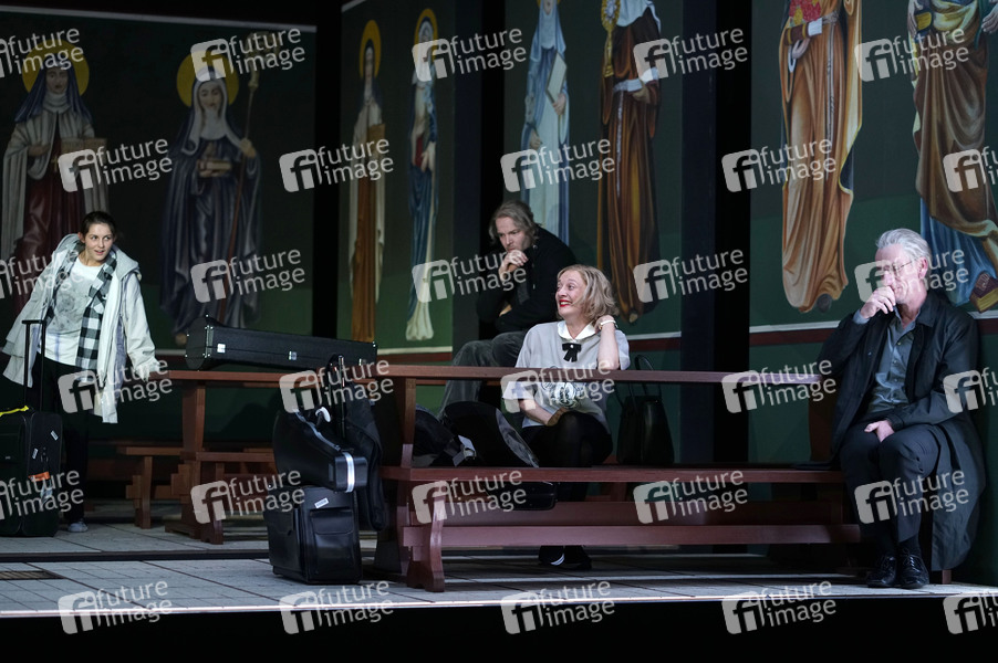 Lorena Handschin, Felix Goeser, Regine Zimmermann und Bernd Moss bei der Fotoprobe des Theaterstücks 'Zdeněk Adamec' im Deutschen Theater. Berlin, 19.10.2020