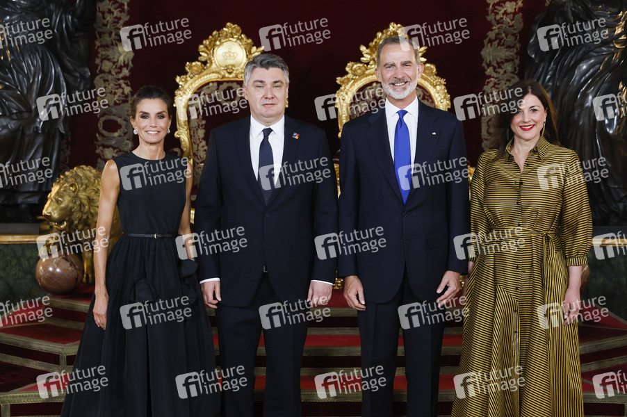 Königin Letizia von Spanien und König Felipe von Spanien mit Zoran Milanovic und Ehefrau Sanja Music Milanovic beim Empfang zum Gala-Dinner zu Ehren der NATO-Staats- und Regierungschefs im Palacio Real. Madrid, 28.06.2022