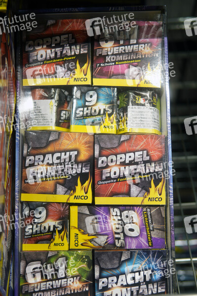 Ab Samstag den 28.12. ist der Verkauf von Feuerwerkskörpern 2024 erlaubt. Auch dieses Jahr wird eine große Nachfrage erwartet. Im Bild Fontänenfeuerwerk im Blisterpack in einem Supermarkt. (Symbolfoto, Themenfoto) Berlin, 28.12.2024