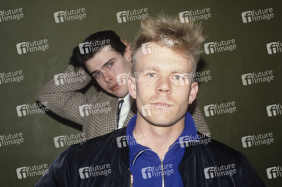 Paul Quinn und Vince Clark bei einem Photoshooting bei Mute Records. London, 14.06.1985