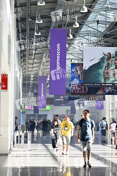 Gamescom 2022 auf dem Gelände der Kölnmesse. Die Gamescom ist die weltweit größte Messe für Computer- und Videospiele, gemessen nach Ausstellungsfläche und Besucheranzahl. Zahlreiche Hersteller aus aller Welt präsentieren hier ihre neue Soft- und Hardware. Köln, 24.08.2022
