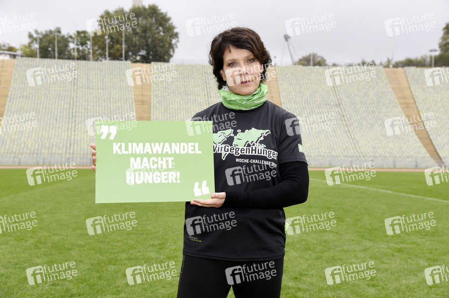 Janina Hartwig beim Fototermin zur sportichen '#WocheChallenge' im Olympiastation München. Unter dem Motto 'Wir können was bewegen!' ruft die Welthungerhilfe zu dieser Challenge auf und bittet um Spenden für eine Welt ohne Hunger. München, 13.10.2020