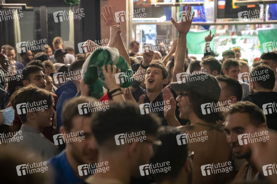 Fans der italienischen Nationalmannschaft feiern den 3:2 Sieg Italiens gegen England im EM-Finale nach Elfmeterscheißen. London, 11.07.2021