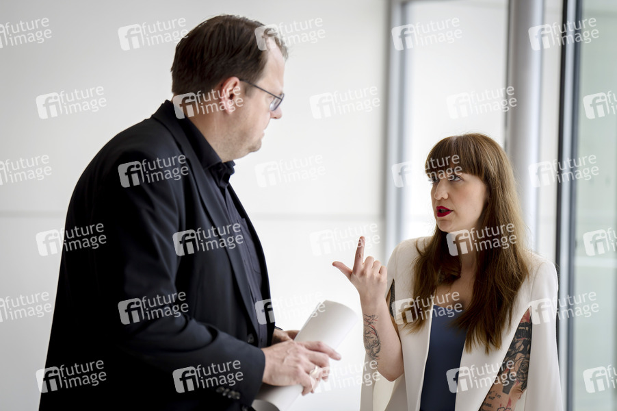 Sören Pellmann und Heidi Reichinnek beim Pressestatement zur Fraktionssitzung der Die Linke-Bundestagsfraktion im Reichstagsgebäude. Berlin, 03.06.2025