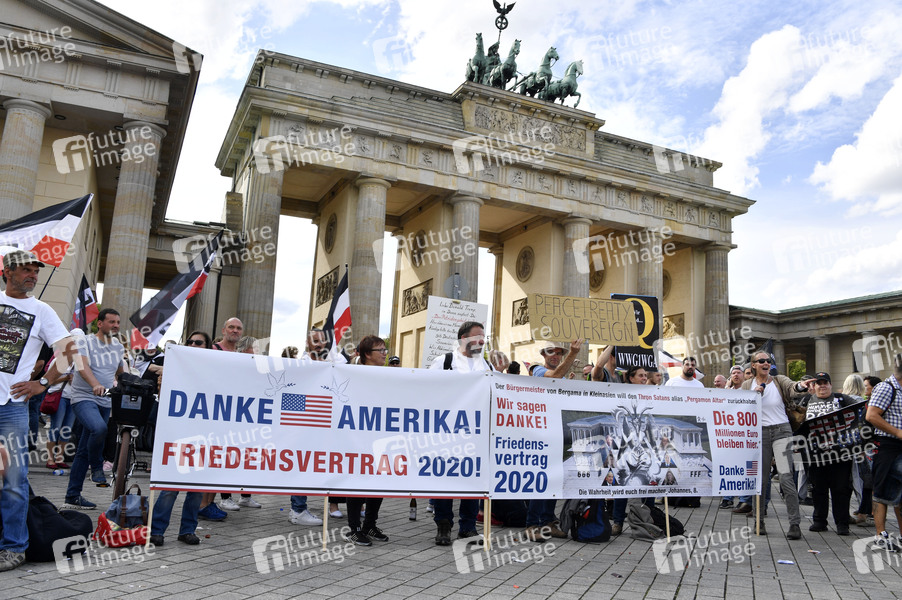 Tausende Menschen demonstrieren gegen die Coronavirus-Auflagen am Brandenburger Tor. Außerdem gibt es Gegendemonstrationen. Berlin, 29.08.2020