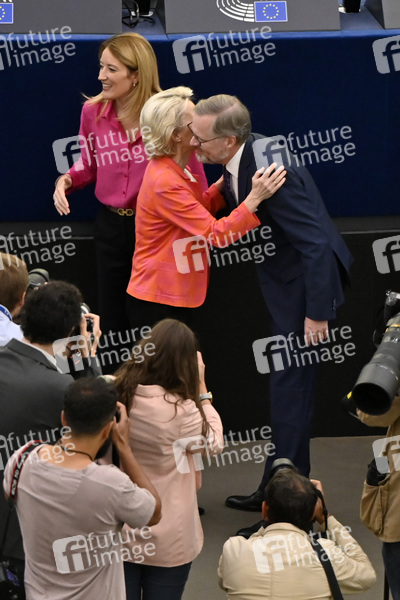Europäisches Parlament, Plenum, Plenartagung, Plenardebatte, Plenarsitzung, Debatte, Rede, Politik, Strasbourg, Strassburg, Europaparlament, Europa-Politik, EU-Abgeordnete, EU-Parlament, EP, Parlament der Europäischen Union, European Parliament, European Union, Parlamentum Europaeum, MdEP, Mitglied des Europäischen Parlaments, Politikerin, Malta, Partit Nazzjonalista, EU-Parlamentspräsidentin, Präsidentin des EU-Parlaments, Deutschland, CDU, Präsidentin der Europäischen Kommission, EU-Präsidentin, Politiker, Ministerpräsident der Tschechischen Republik, Občanská demokratická strana, ODS
