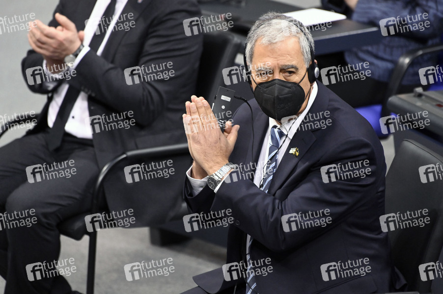 Mickey Levy bei der Gedenkstunde zum Tag des Gedenkens an die Opfer des Nationalsozialismus anlässlich des Jahrestages der Befreiung des NS-Vernichtungslagers Auschwitz im Deutschen Bundestag im Reichstagsgebäude. Berlin, 27.01.2022