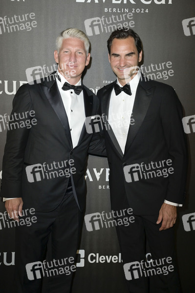 Bastian Schweinsteiger und Roger Federer bei der Eröffnung des Laver Cup 2024 im Westhafen Event- und Kongresszentrum. Berlin, 19.09.2024