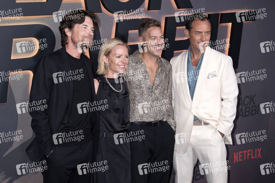 Jason Bateman, Kate Susman, Zach Baylin und Jude Law bei der Premiere der Netflix Miniserie 'Black Rabbit' im SVA Theater. New York, 16.09.2025