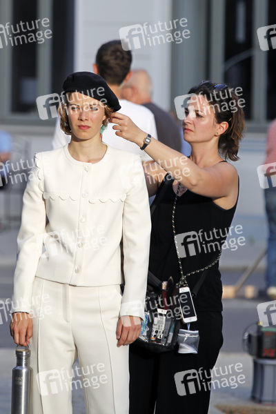 Saskia Rosendahl bei Dreharbeiten zum Kinofilm 'Fabian - Der Gang vor die Hunde' am Postplatz Ecke Konsulstrasse. Görlitz, 09.08.2019