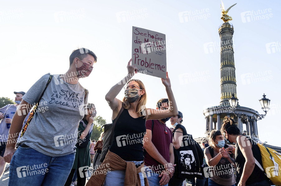 Demonstranten fordern unter dem Motto 'Es reicht! - Wir haben Platz' gemeinsam mit der Aktion Seebrücke und Campact die Evakuierung des Flüchtlingslagers in Moria und die Aufnahme von Flüchtlingen in Deutschland. Berlin, 20.09.2020