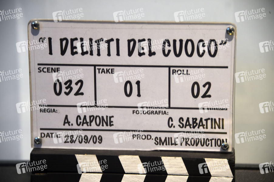 Filmklappe aus Bud Spencer Film beim Pre-Opening vom Bud Spencer-Museum im Palazzo Italia - Römischer Hof. Berlin, 25.06.2021