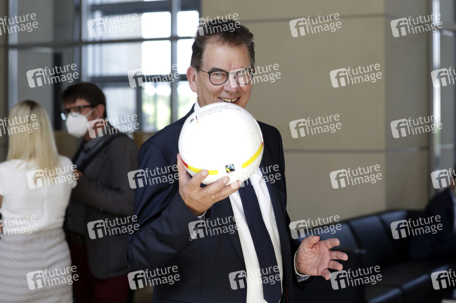 Gerd Müller mit EM-Fußball am Rande der 234. Sitzung des Deutschen Bundestages im Reichstagsgebäude. Berlin, 11.06.2021