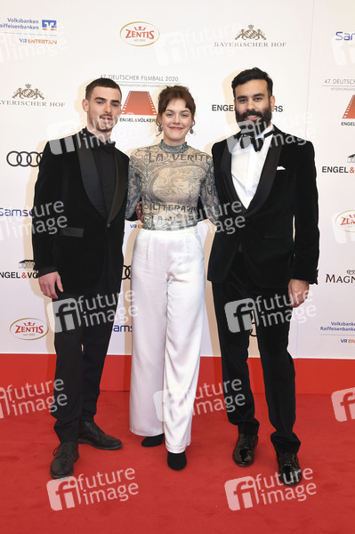 Aaron Hilmer, Valerie Stoll und Alireza Golafshan beim 47. Deutschen Filmball 2020 im Hotel Bayerischer Hof. München, 18.01.2020