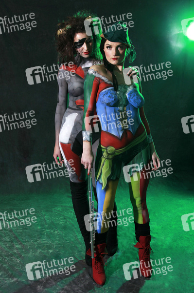 Rattenfänger Bodypainting mit den Models Lisa und Janina im Schlosshotel Münchhausen, Aerzen. Body Paint Künstler: Jörg Düsterwald