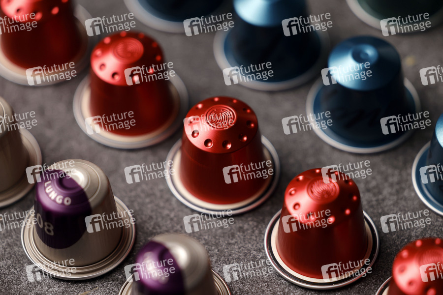 Kaffeekapseln verschiedener Hersteller auf einem Tisch. Die Organisation Foodwatch kritisiert Kaffeekapseln immer wieder als 'riesige Ressourcenverschwendung'. Zuletzt ließ man die Werbelüge eines Herstellers abmahnen, dessen Kaffeekapseln seien kompostierbar. (Themenbild, Symbolbild) 25.01.2022