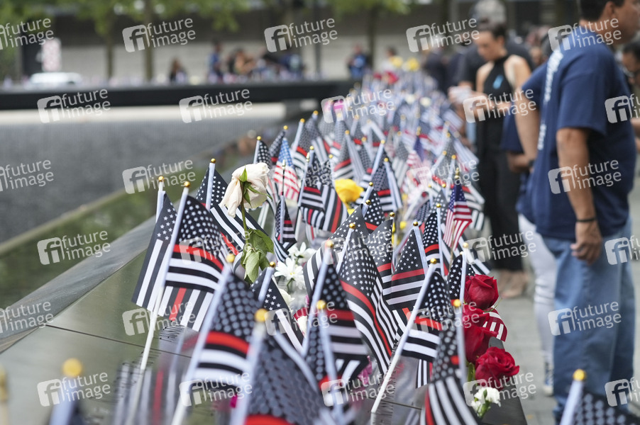 Gedenkfeier für die Opfer der Terroranschläge vor 21 Jahren am 9/11 Memorial. Mit Schweigeminuten und der Verlesung der Namen der fast 3000 Todesopfer haben die USA am Sonntag an die Terroranschläge vom 11. September 2001 erinnert. Am früheren Standort des World Trade Centers in New York verlasen Angehörige wie jedes Jahr am 11. September die Namen aller Anschlagsopfer. New York, 11.09.2022