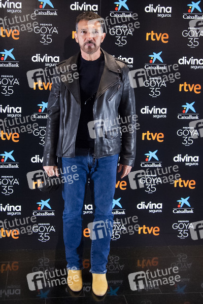 Antonio Banderas beim Photocall mit den Moderatoren der 35. Goya Awards / Premios Goya 2021 in der Academia de las Artes y las Ciencias Cinematográficas. Madrid, 02.02.2021
