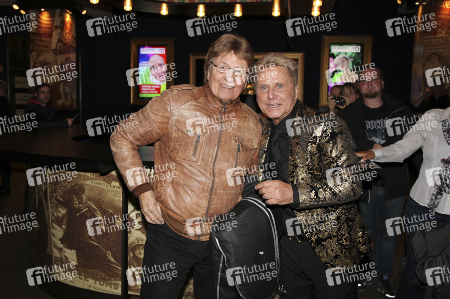 Andreas Holm und Hans-Jürgen Beyer bei der Aufzeichnung der TV Show 'Wiedersehen der Ostlegenden' im Boulevardtheater. Dresden, 13.11.2019
