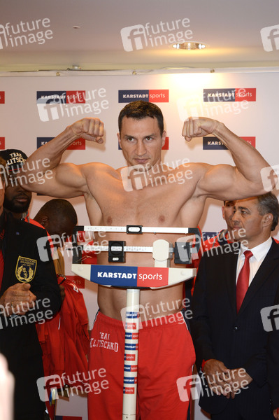 Wladimir Klitschko beim Einwiegen anlässlich des WM-Boxkampfs Wladimir Klitschko vs Alex Leapai in den Karstadt Arkaden vom Rhein-Ruhr Zentrum. Mülheim an der Ruhr, 25.04.2014