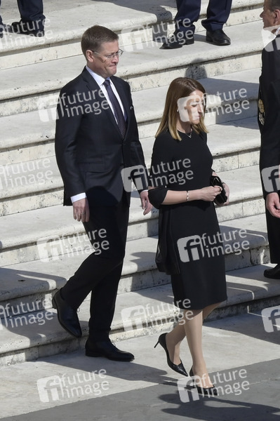 Roberta Metsola mit Ehemann Ukko Metsola bei der Amtseinführung von Papst Leo XIV. auf dem Petersplatz. Vatikanstadt, 18.05.2025