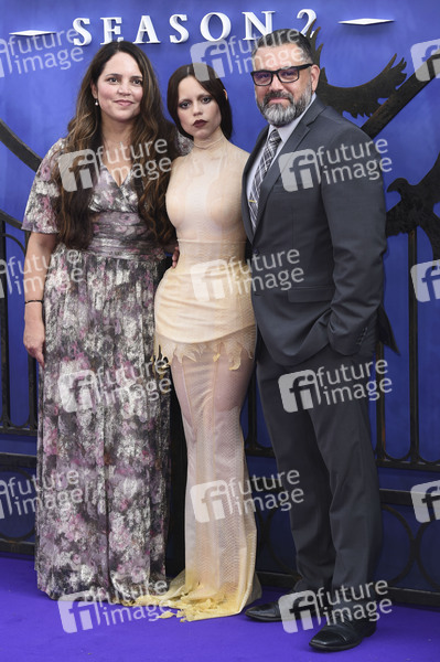 Jenna Ortega mit Eltern Natalie Ortega und Edward Ortega bei der Premiere der Season 2, Part 1 der Netflix Serie 'Wednesday' in der Central Hall. London, 30.07.2025
