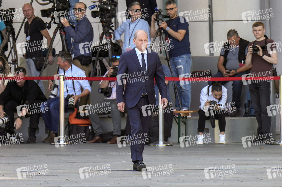 Olaf Scholz beim Empfang der Bundespräsidentin der Schweiz mit militärischen Ehren und zu einem Gespräch mit anschließendem Pressestatement im Bundeskanzleramt. Berlin, 15.05.2024