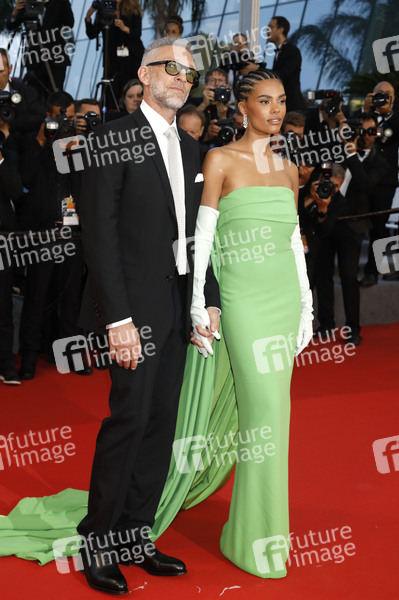 Vincent Cassel mit Ehefrau Tina Kunakey bei der Premiere des Kinofilms 'Crimes of the Future' auf dem Festival de Cannes 2022 / 75. Internationale Filmfestspiele von Cannes im Palais des Festivals. Cannes, 23.05.2022