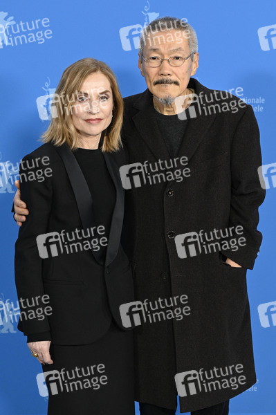 Isabelle Huppert und Hong Sang-soo beim Photocall zum Kinofilm 'A Traveler's Needs / Yeohaengjaui pilyo' auf der Berlinale 2024 / 74. Internationale Filmfestspiele Berlin im Hotel Grand Hyatt. Berlin, 19.02.2024