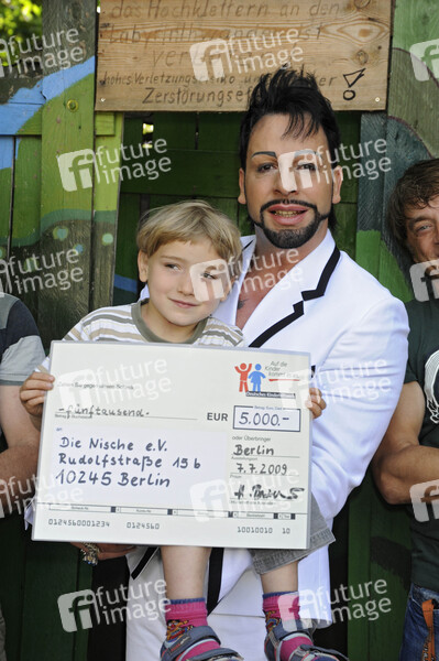 Harald Glööckler, bester Gastgeber der TV Sendung 'Das Perfekte Promi Dinner', übergibt seinen Gewinn von 5000 Euro an den Verein 'Die Nische' vom Deutschen Kinderhilfswerk e.V. Berlin