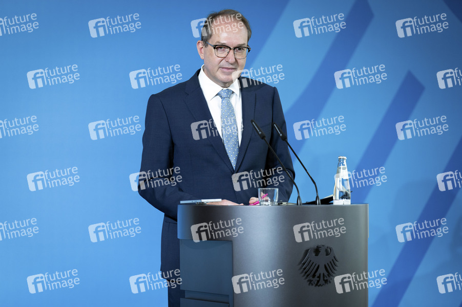 Alexander Dobrindt beim Pressestatement zu den Beschlüssen des Bundeskabinetts im Bundesministerium des Innern. Berlin, 08.10.2025