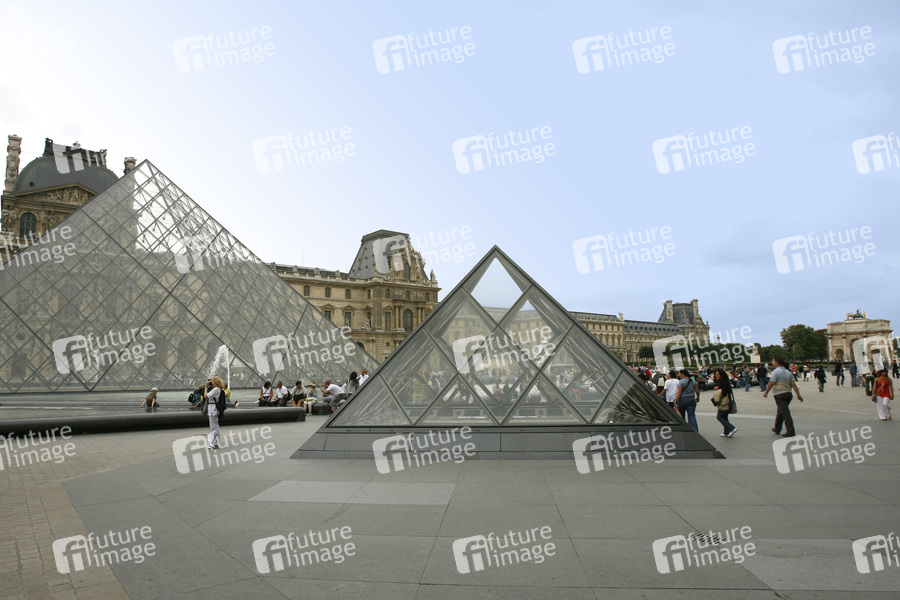 frühere französische Königsresidenz, das drittgrößte Museum der Welt, Baubeginn 1190, der Louvre entwickelte sich aus eine ganzen Reihe von Bau- und Umbaumaßnahmen, Glaspyramide im Innenhof 1989 erbaut vom Architekten Ieoh Ming Pei