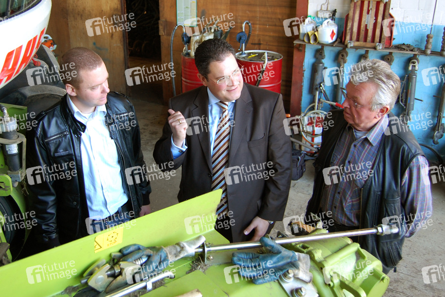 Der bisherige FDP-Schatzmeister Patrick Döring wird neuer FDP-Generalsekretär (Foto mit landwirtschaftlichen Lohnunternehmern Oliver Genz und Klaus Genz am 09.10.2010 in Brase, Neustadt am Rübenberge)