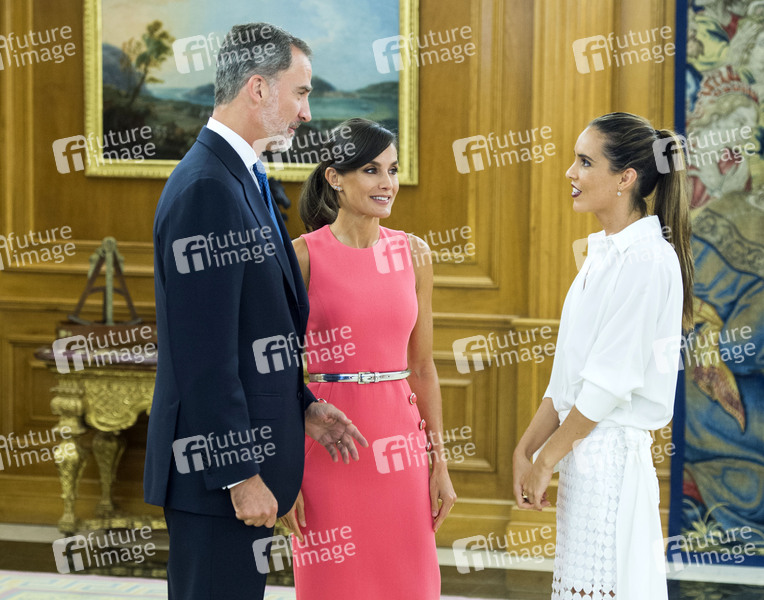 Adel, König von Spanien, Staatsoberhaupt, Fürst von Asturien, Fürst von Girona, Felipe de Borbón, Monarch, Königin von Spanien, Letizia Ortiz Rocasolano, Fürstin von Asturien, Royals, Sportlerin, Schwimmerin, Synchronschwimmerin, Empfang, Zarzuela Palast