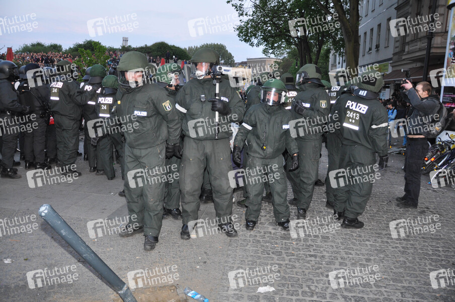 Demo, Demonstranten, Maidemonstration, Polizei, Polizisten, Polizist, Straßenschlacht