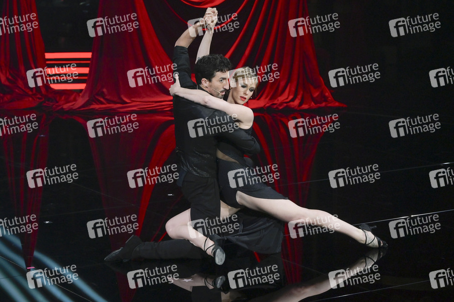 Federica Pellegrini und Samuel Peron in der 1. Episode der Rai Tanzshow 'Ballando con le stelle 2025' im Auditorium Rai Foro Italico. Rom, 09.05.2025