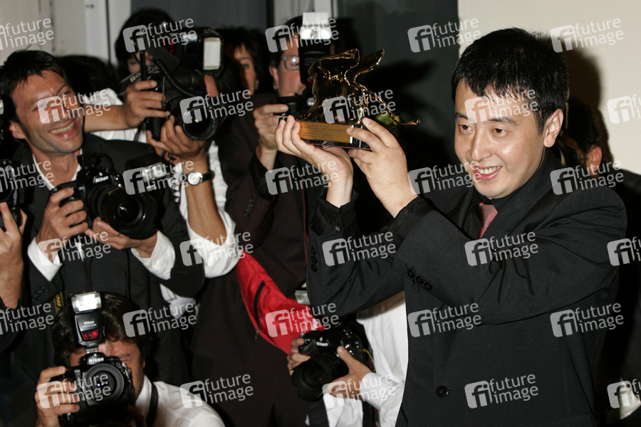 Jia Zhangke mit dem Goldenen Löwen für den besten Film 'Still Life / San xia hao ren' beim Photocall mit den Preisträgern auf der Biennale di Venezia 2006 / 63. Internationale Filmfestspiele von Venedig im Palazzo del Casino. Venedig, 09.09.2006