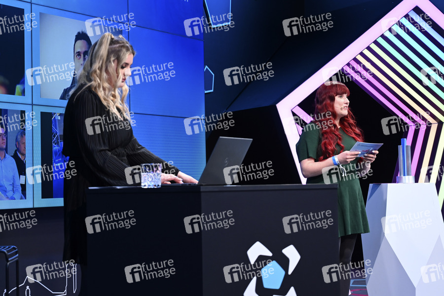 Olivia Osthushenrich und Kathrin Radtke bei der Verleihung des Deutschen Computerspielpreises 2022 in der TonHalle. München, 31.03.2022