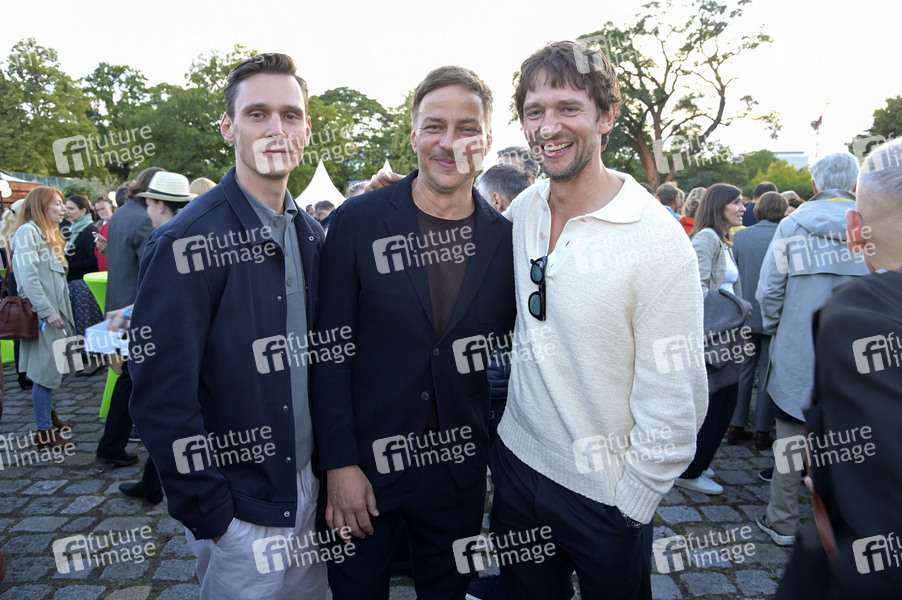 Rick Okon, Tom Wlaschiha und August Wittgenstein beim Fest der Produktionsallianz 2024 im Tipi am Kanzleramt. Berlin, 13.06.2024