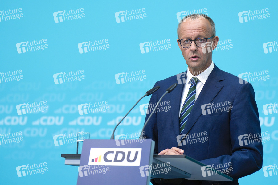 Friedrich Merz bei der Pressekonferenz der CDU zur Landtagswahl in Brandenburg im Konrad-Adenauer-Haus. Berlin, 23.09.2024