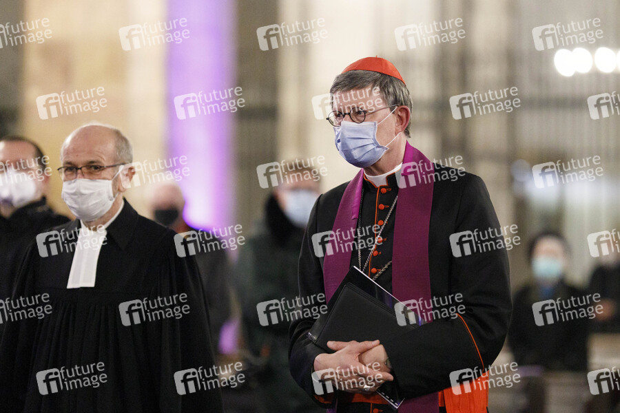 Zu Beginn des neuen Kirchenjahres luden der Kölner Erzbischof Rainer Maria Kardinal Woelki und der Präses der Evangelischen Kirche im Rheinland Manfred Rekowski auch in diesem Jahr zu einer ökumenischen Vesper am Vorabend des 1. Advent ein in der Kölner Basilika St. Aposteln. Aufgrund der Coronakrise galten gewisse Sicherheitsregeln wie das Tragen von Mundschutz. Kardinal Woelki steht wegen seines Umgangs mit einem Missbrauchsgutachten einer Münchner Kanzlei in der Kritik. Köln, 28.11.2020