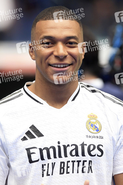 Kylian Mbappe bei der Präsentation als neuer Spieler von Real Madrid im Estadio Santiago Bernabéu. Madrid, 16.07.2024