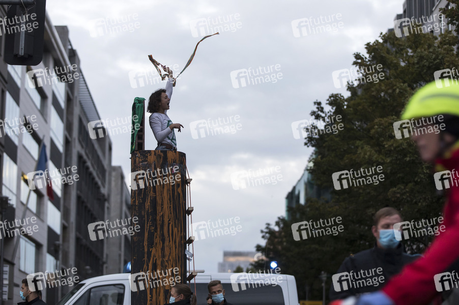 Aktivisten der Klimaschutz-Bewegung Exctinction Rebellion demonstrieren für die Umsetzung der Klimaschutzziele und blockieren alle Zufahrtswege zum Regierungsviertel. Berlin, 07.10.2020