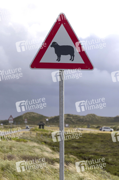 Das Verkehrszeichen Achtung Schafe zum Schutz freilaufender Schafe und Unfallvermeidung. (Symbolfoto, Symbolbild) List, 23.07.2025