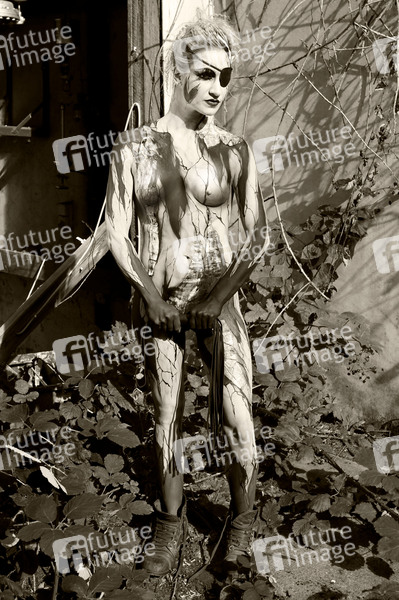 Bodypainting, Erotik, Frau, Mädchen, nackt, draußen, weiblich, Körperkunst, Kunst, Malerei, Augenklappe, Peitsche, erotic, woman, girl, nude, outdoor, female, body art, body painting, eyepatch, whip