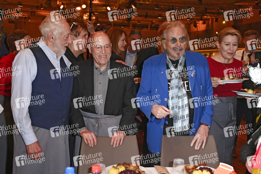 Dieter Hallervorden, Gregor Gysi, Frank Zander und Franziska Giffey bei Frank Zanders 31. Weihnachtsfeier für Obdachlose und Bedürftige 2025 im Estrel Convention Center. Berlin, 22.12.2025