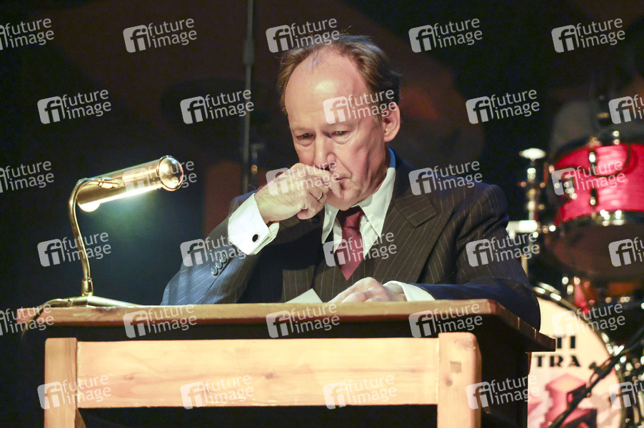 Ulrich Noethen und das Moka Efti Orchestra bei der musikalischen Lesung 'Der nasse Fisch' im Theater am Tanzbrunnen. Köln, 12.03.2025